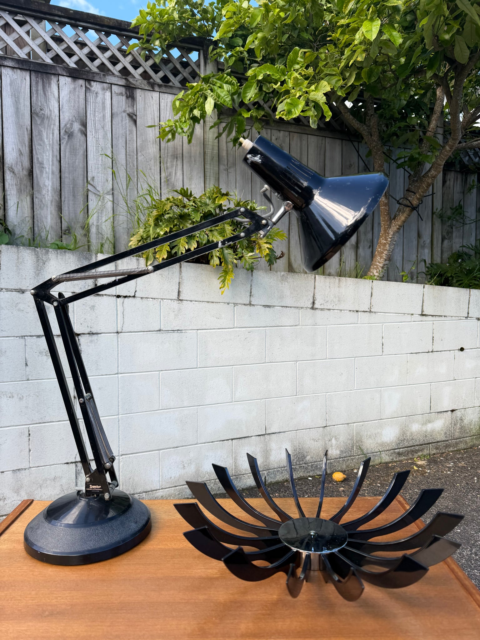 These are so iconic, the Superlux anglepoise lamp, made in NZ. The shape of these ones are our ultimate favourite. This is an early model with stainless steel components rather than the plastic used in later models.