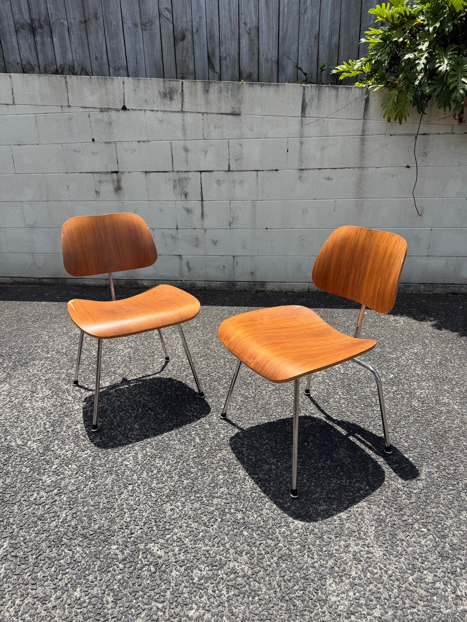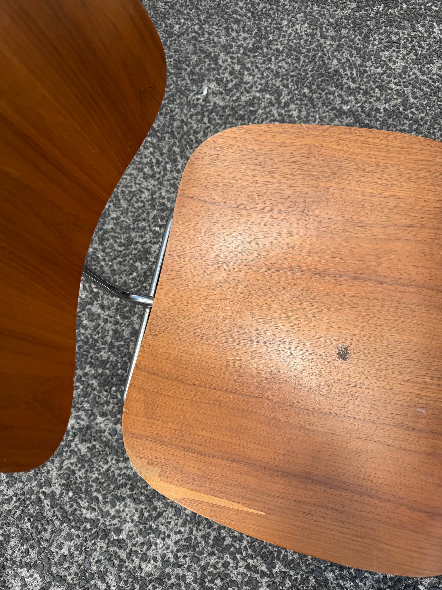 Molded plywood seats with chrome plated legs, the iconic Eames silhouette